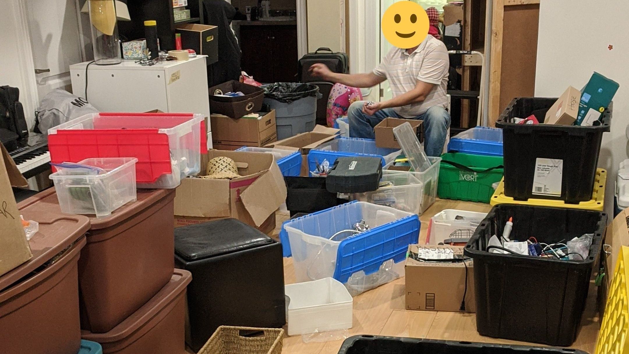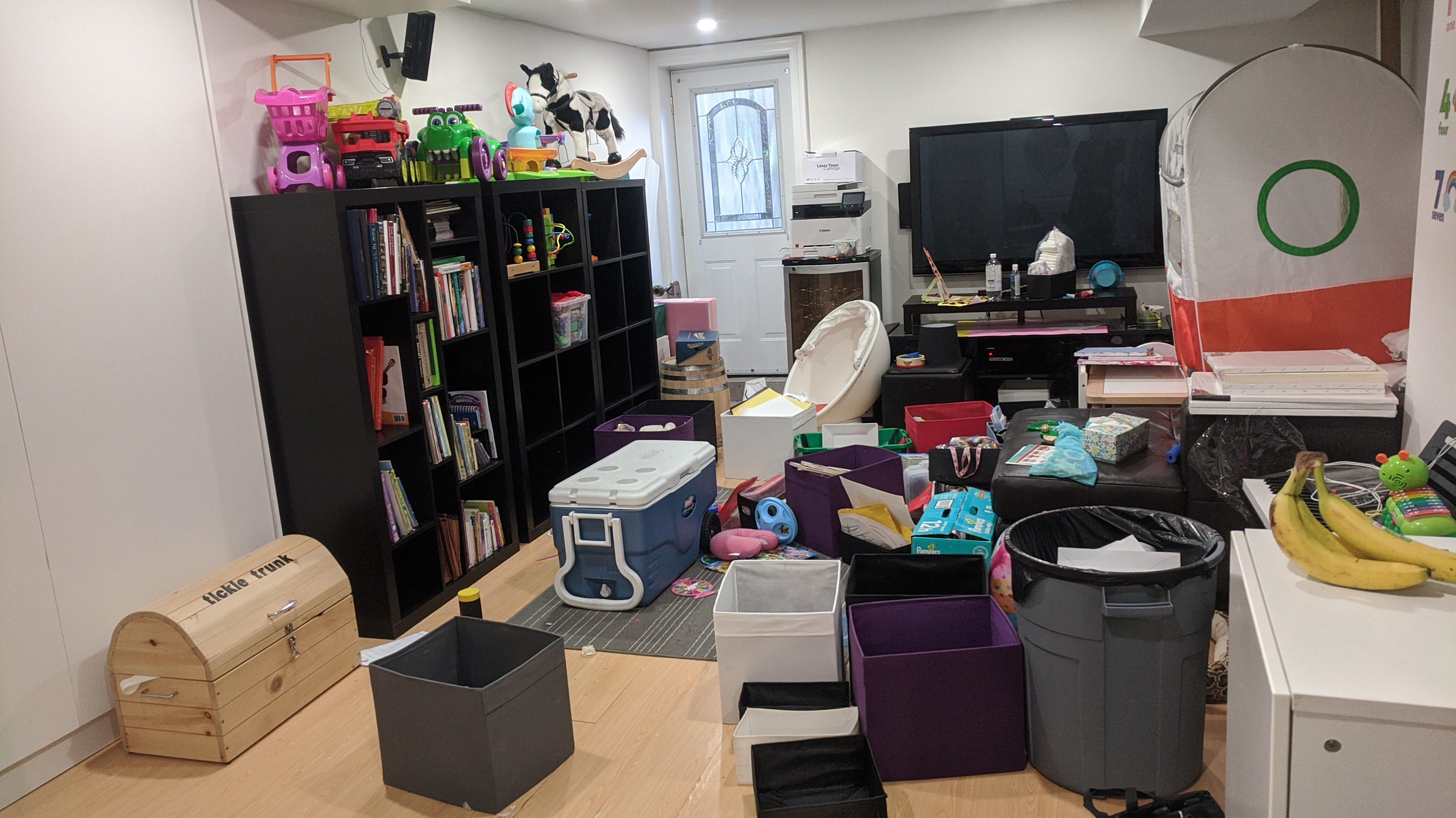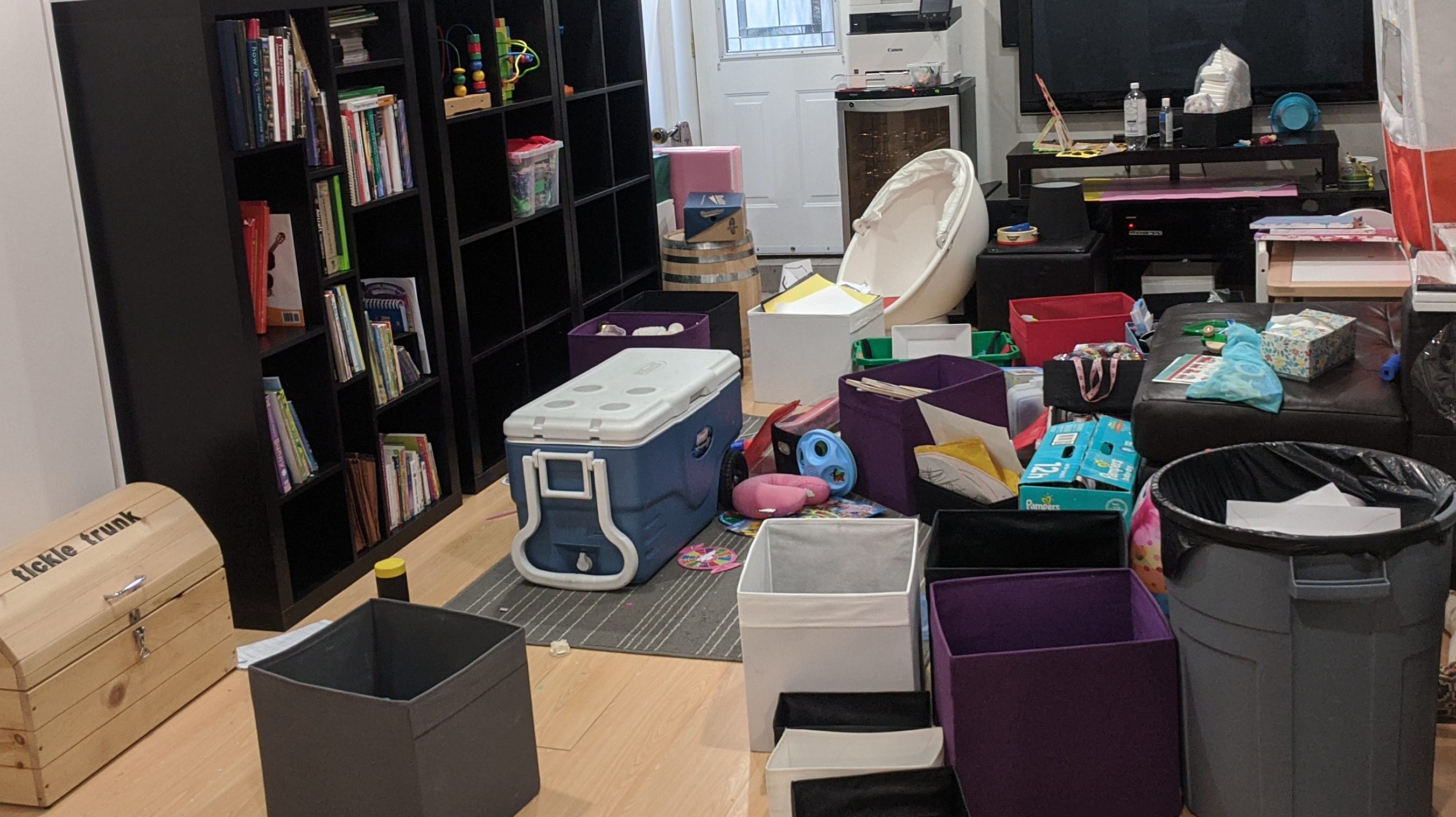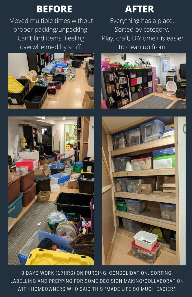 After multiple moves without ‘proper packing and unpacking,’ they had a basement full of seasonal clothing, tools, renovation supplies, old kids stuff and other random things that had been shoved into boxes onto shelves.